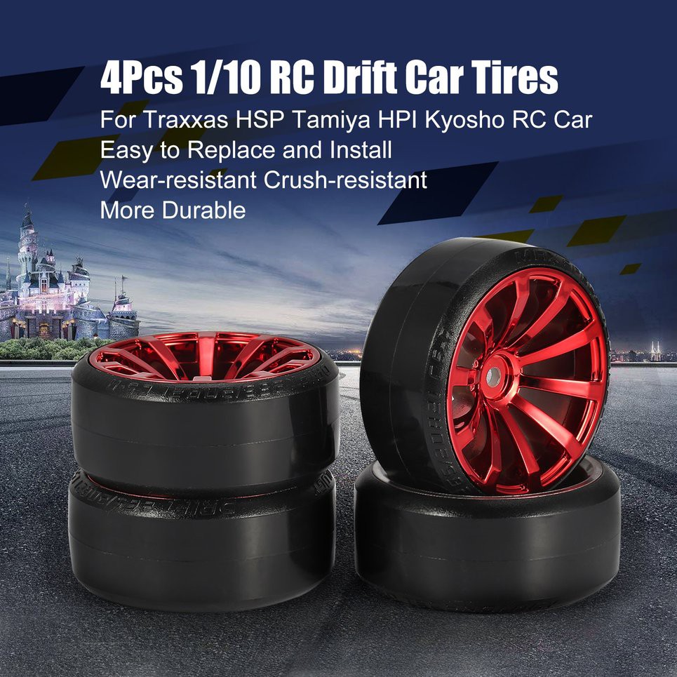 - Amazon Com 4pack Sharegoo Rc Drift Tires Set Rc Hard Plastic Tyres Wheel Rims 12mm Hex For Traxxas Hsp Tamiya Kyosho Hpi Redcat 1 10 On Road Racing Drifting Rc Car Toys Games