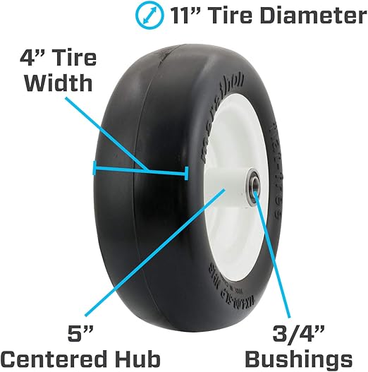 - Amazon Com Marathon 11x4 00 5 Flat Free Lawnmower Tire On Wheel 5 Centered Hub 3 4 Bushings Lawn Mower Parts Garden Outdoor