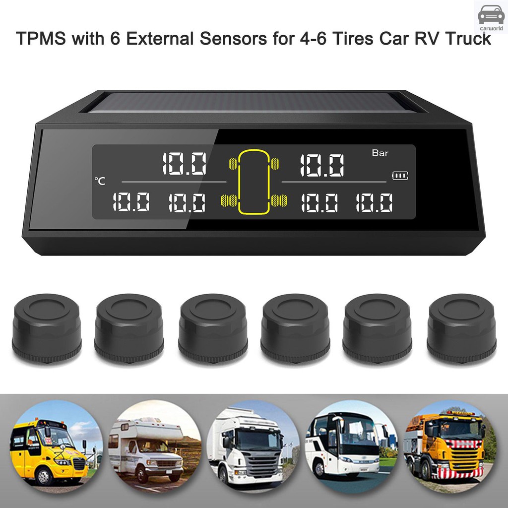 - Wireless Solar Power Tpms Tire Pressure Monitoring System Rv Truck Tpms With 6 External Sensors For 4 6 Tires Car Rv Truck Tow Trailers 0 130psi Shopee Indonesia