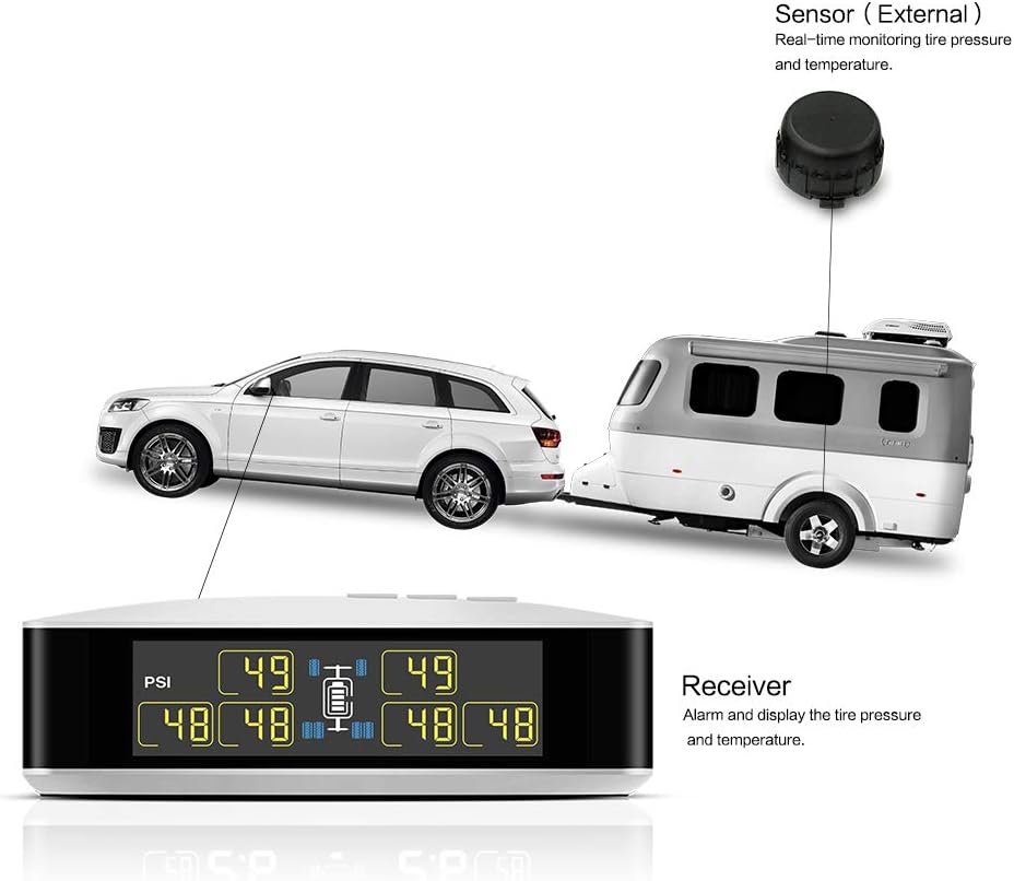 - Replacement Sensors Tires Wheels Universal Tire Pressure Monitoring System With 6 External Sensors Real Time Display 4 6 Tires Pressure And Temperature 0 116psi For Car Rvs Truck Tow Trailers Elikliv Wireless Solar Power